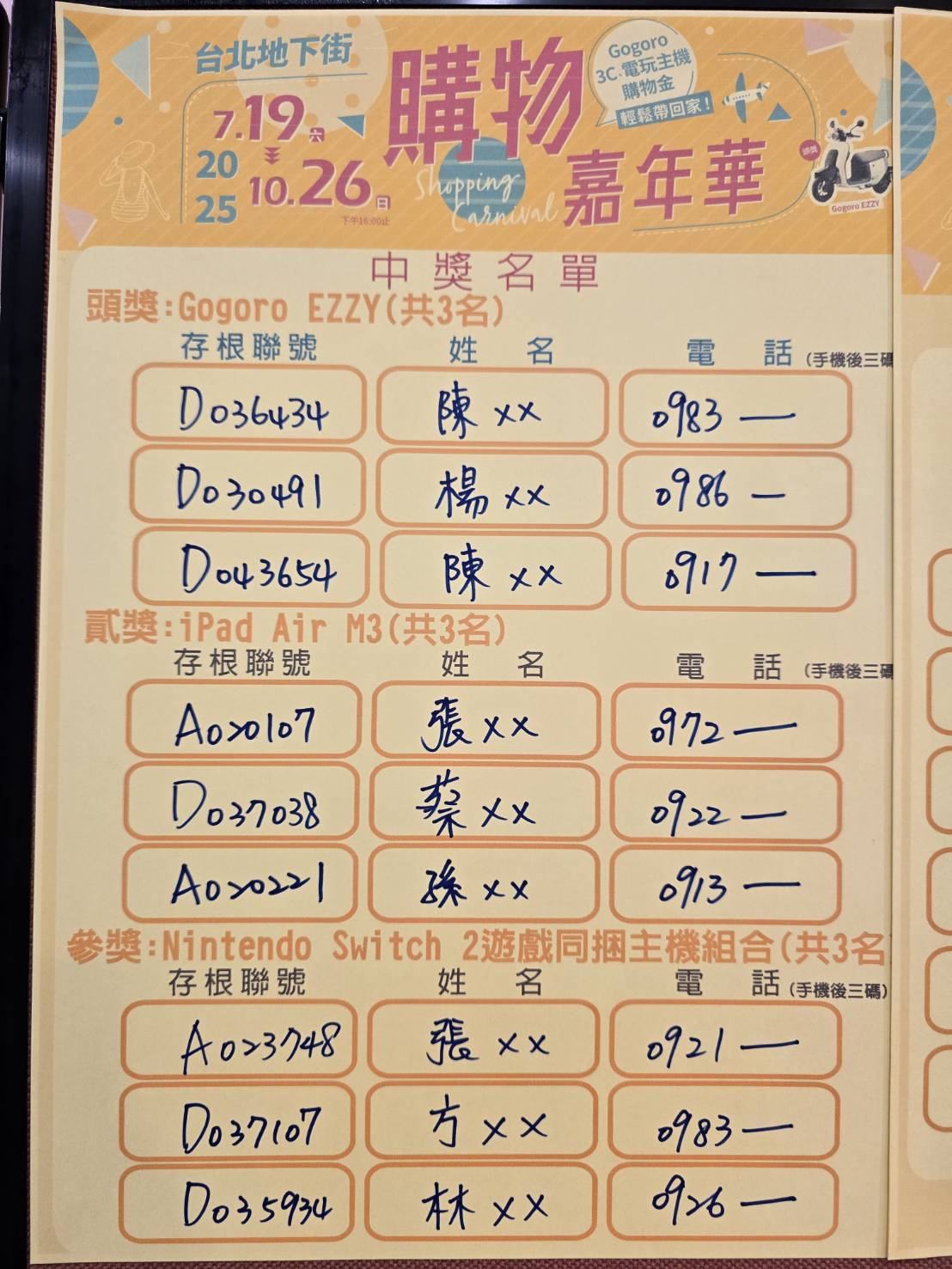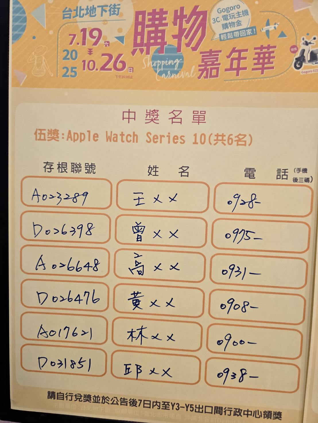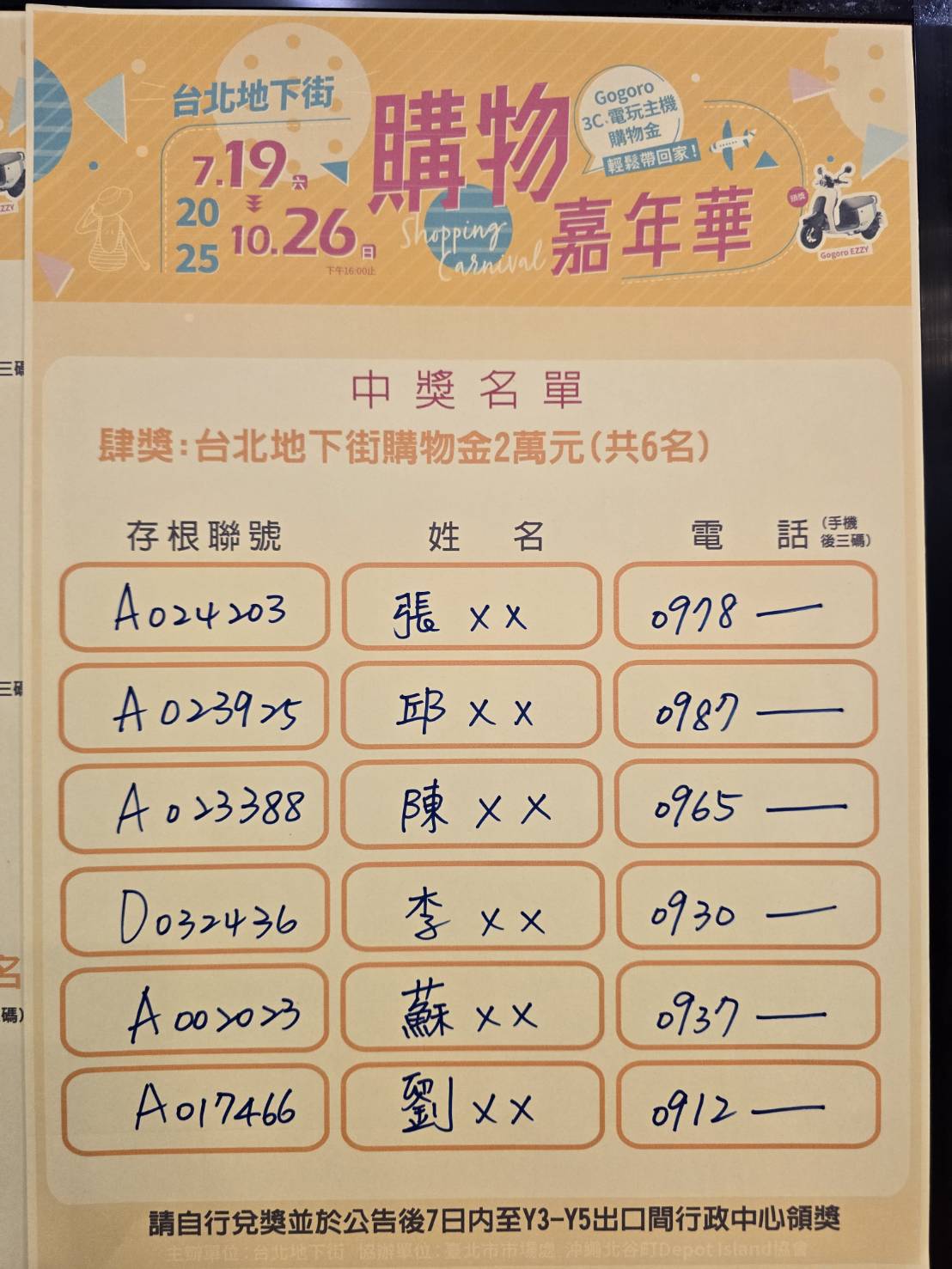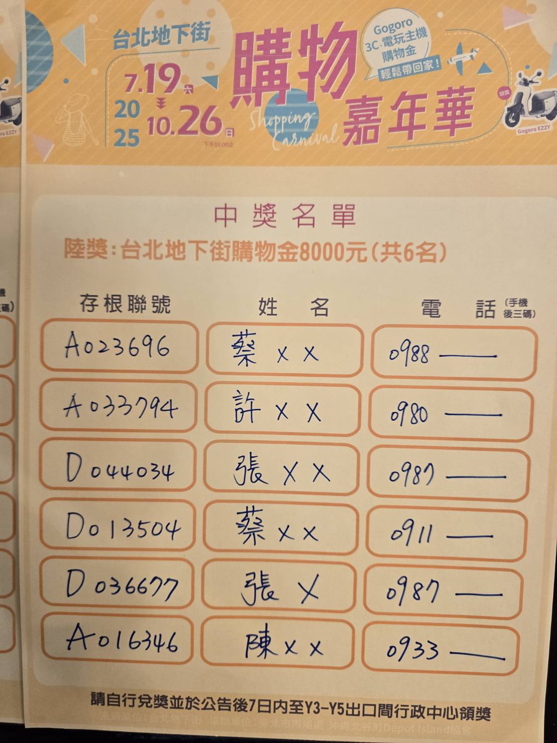至台北地下街行政中心Y3-Y5間辦公室領取獎品
